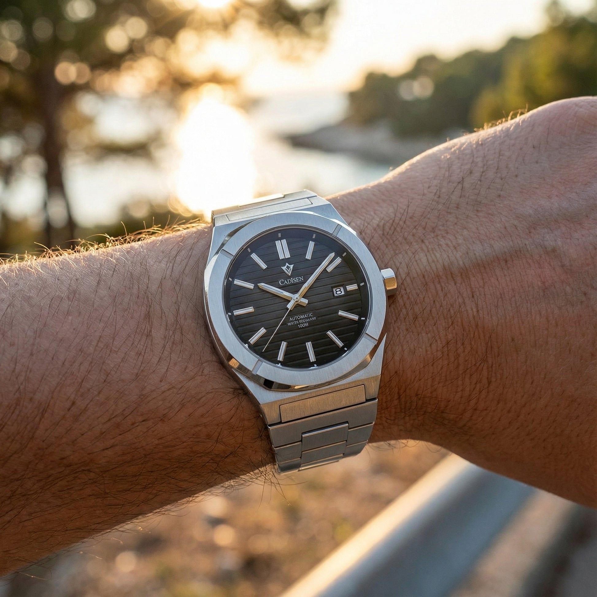 A watch should be ready for life's challenges. We use stainless steel (or titanium) for the case and a scratch-resistant glass two of the hardest materials available. These premium components ensure your watch maintains its sharp, luxurious look and resists the impacts of daily wear, maintaining its investment value for decades. It's true quality you can feel and trust.