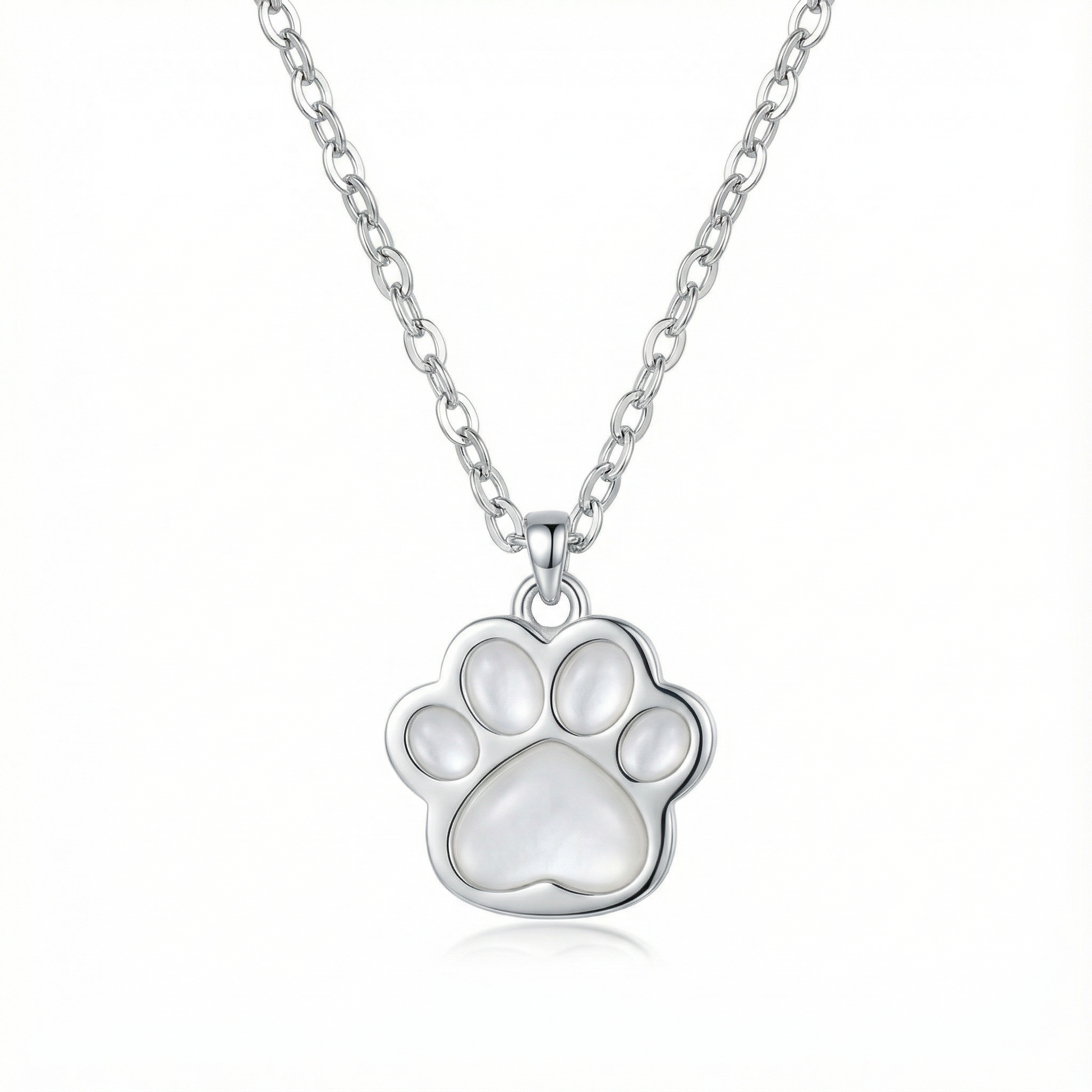This cat paw pendant measures 11.3 x 12 mm and hangs from a classic O-chain with adjustable length spanning 40 to 45 cm.