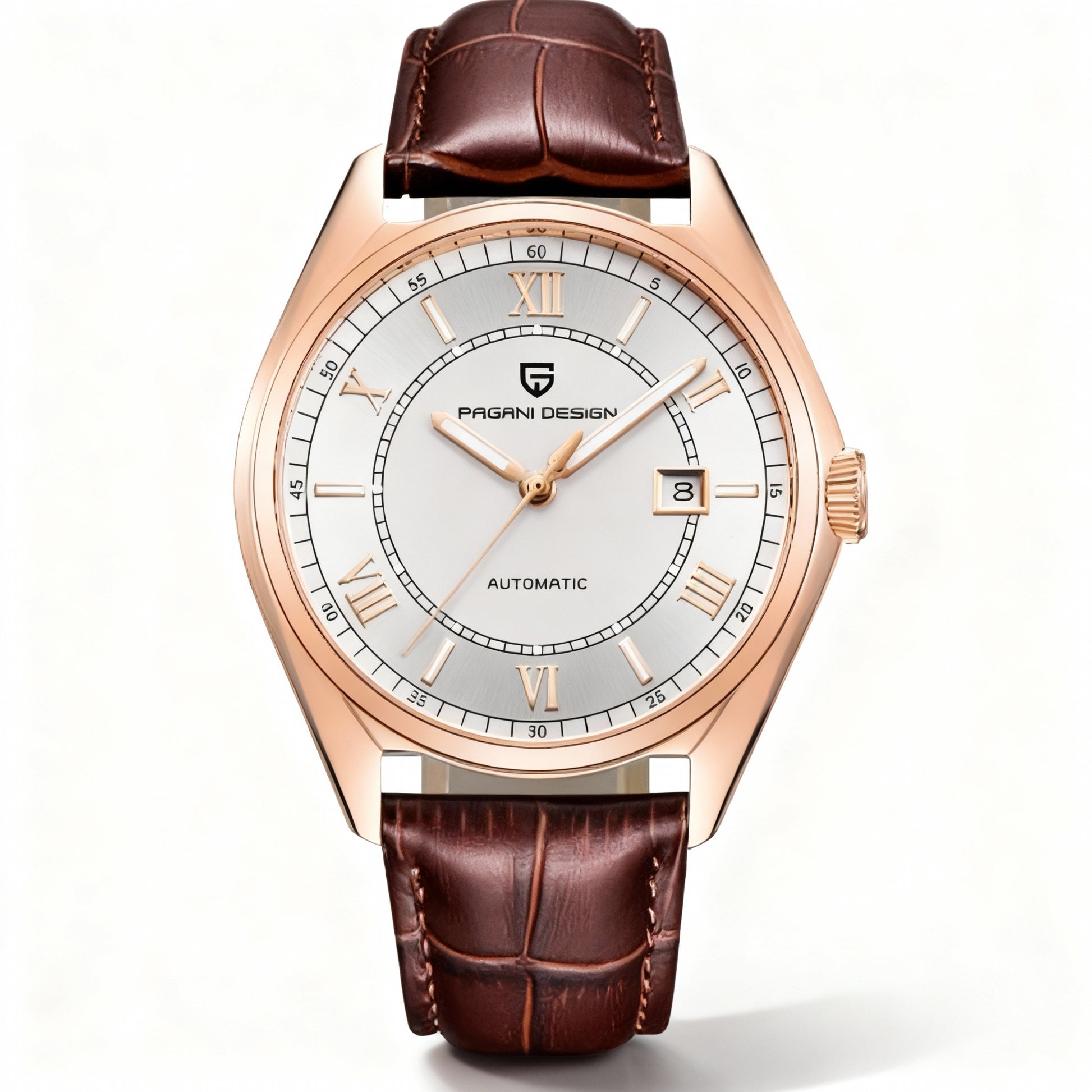 The Elegance Automatic Mechanical Watch represents a masterclass in balanced design, seamlessly integrating practical functionality with refined aesthetics.