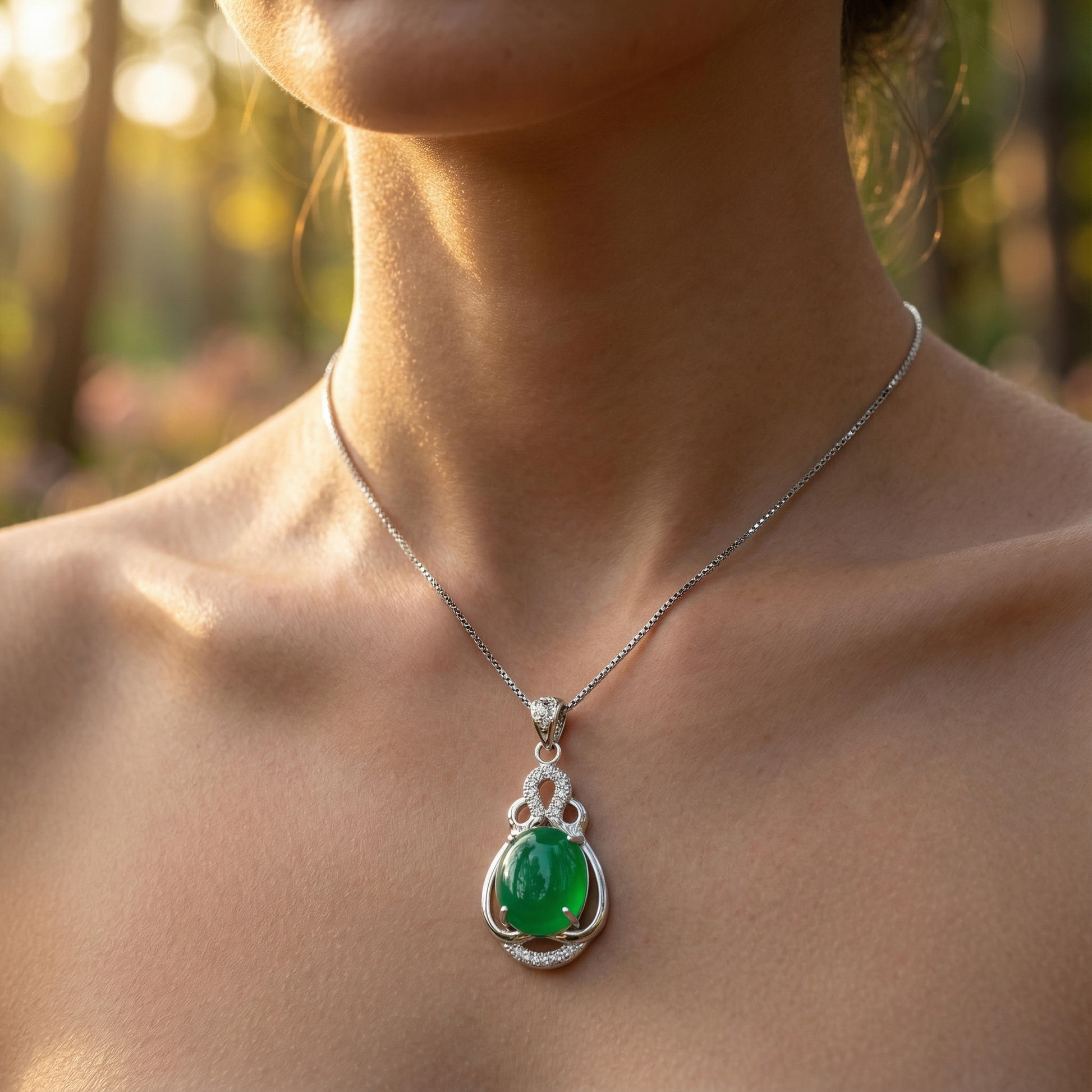 Discover the elegance of our stunning 925 Sterling Silver Green Chalcedony Pendant Necklace.