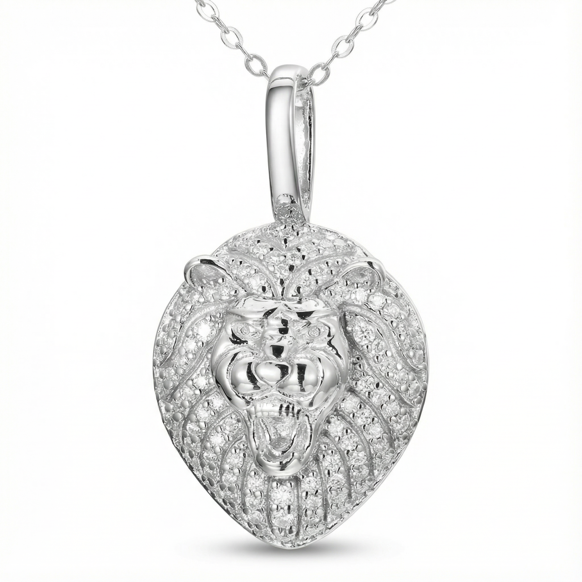 Moissanite Lion Head Necklace - 925 Sterling Silver