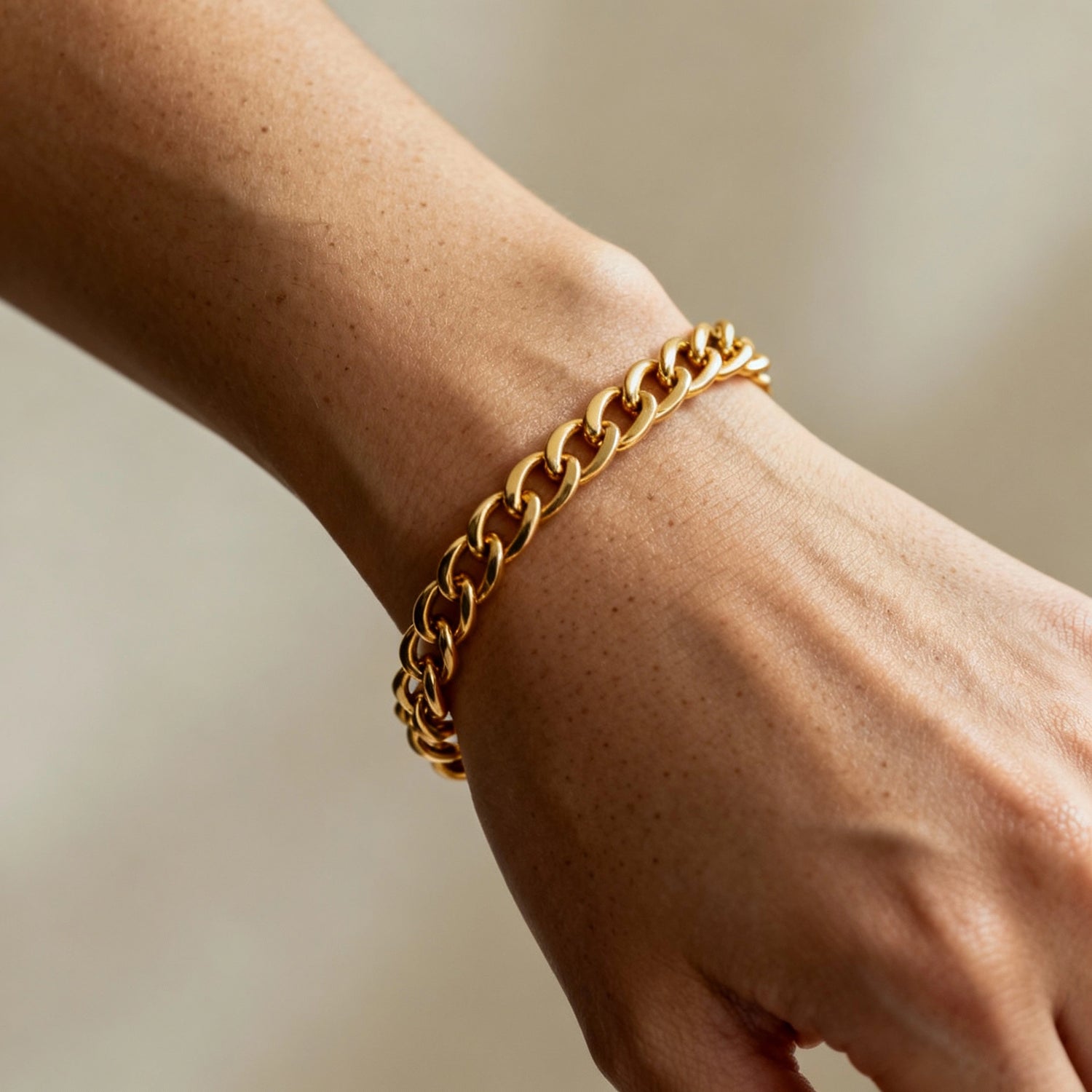 Your wrist is a canvas for self-expression. This bracelet is crafted with a timeless, refined profile that makes it incredibly versatile. It has the perfect width and finish to look effortlessly elegant when worn alone, yet its design is subtle enough to serve as the ideal foundational piece for stacking. Mix it with your watch, bangles, or other chains to create a personalized, dynamic wrist statement that changes with your mood.