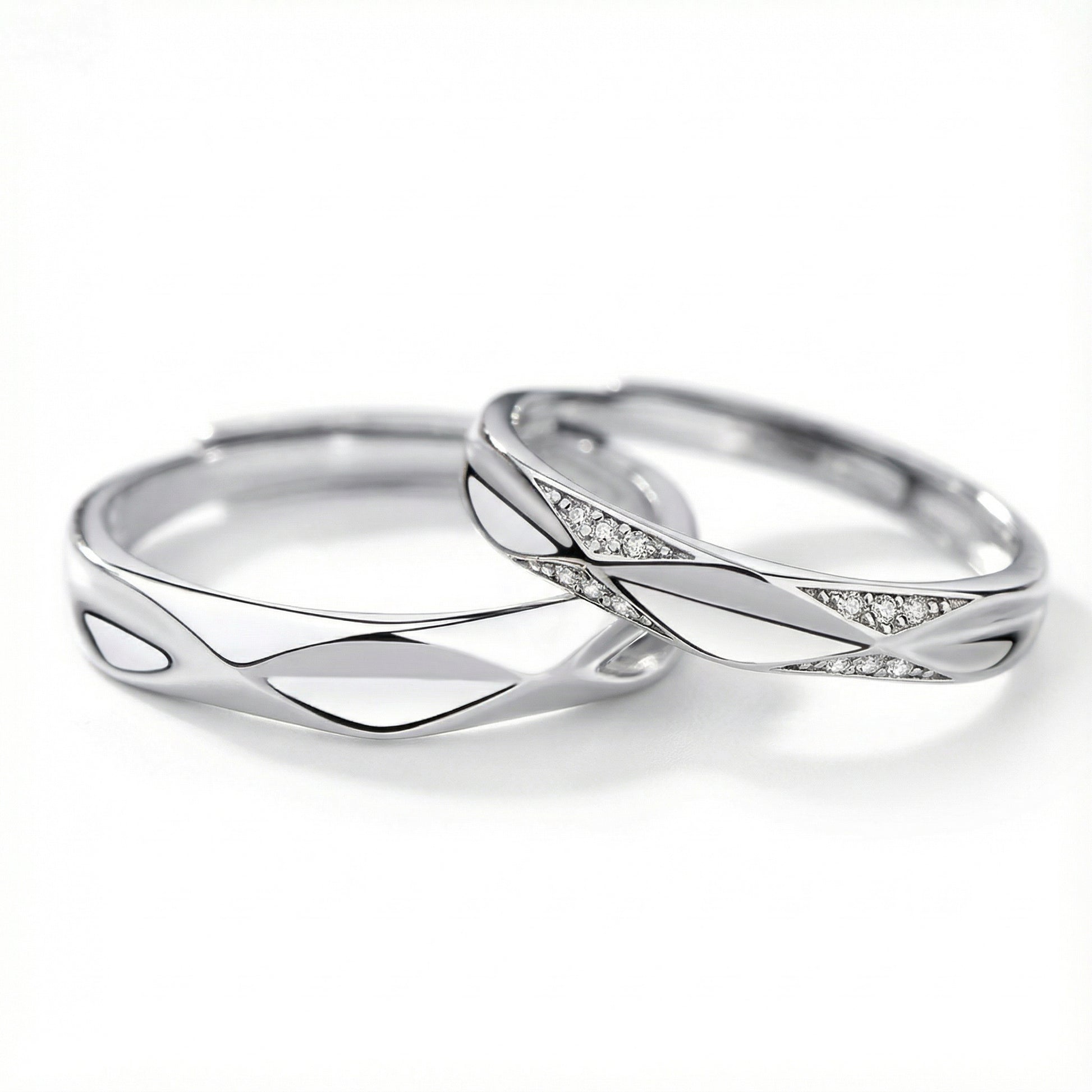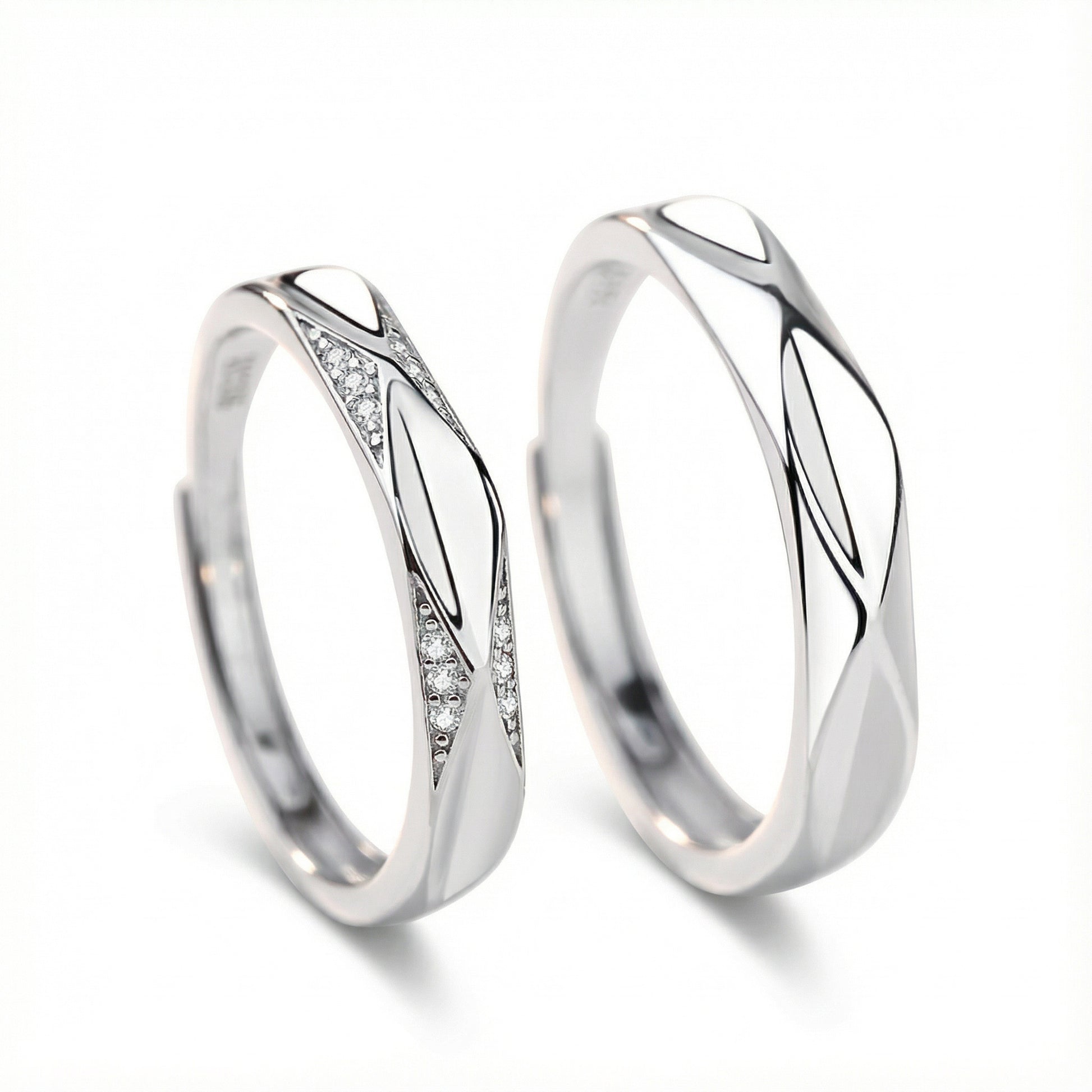 Diamond Shape Couple Rings - (Adjustable) - 925 Sterling Silver