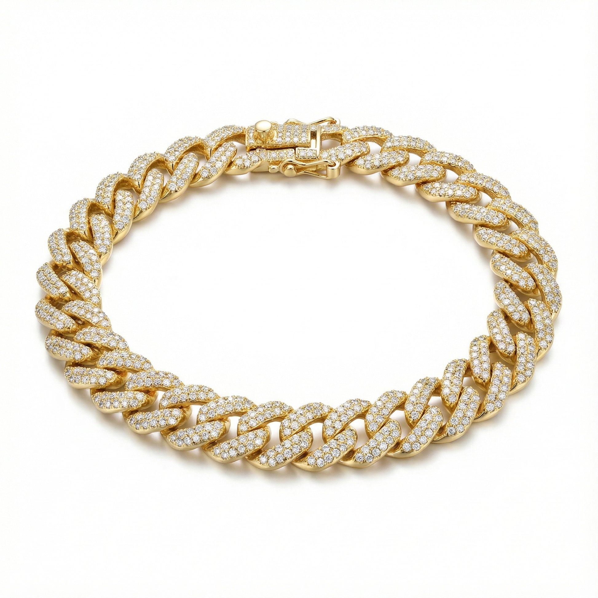 Designed in a classic Cuban link style, this bracelet features a bold yet sophisticated look, with each zircon stone meticulously set to mimic the brilliance of real diamonds.