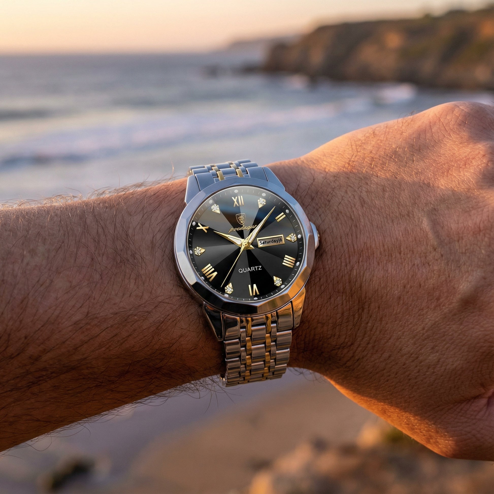 A watch should be ready for life's challenges. We use stainless steel (or titanium) for the case and a scratch-resistant glass two of the hardest materials available. These premium components ensure your watch maintains its sharp, luxurious look and resists the impacts of daily wear, maintaining its investment value for decades. It's true quality you can feel and trust.