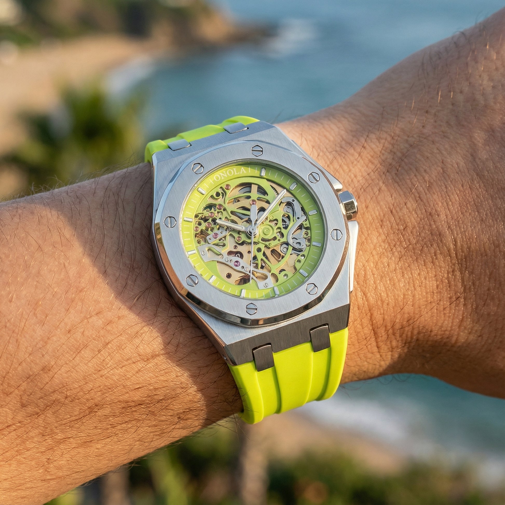 The Vanguard is a precision-engineered automatic skeleton watch that seamlessly bridges mechanical artistry with modern versatility.