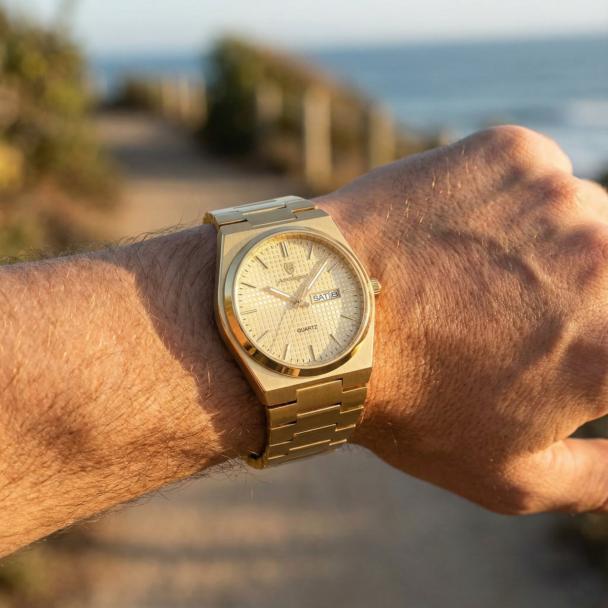 A watch should be ready for life's challenges. We use stainless steel (or titanium) for the case and a scratch-resistant glass two of the hardest materials available. These premium components ensure your watch maintains its sharp, luxurious look and resists the impacts of daily wear, maintaining its investment value for decades. It's true quality you can feel and trust.